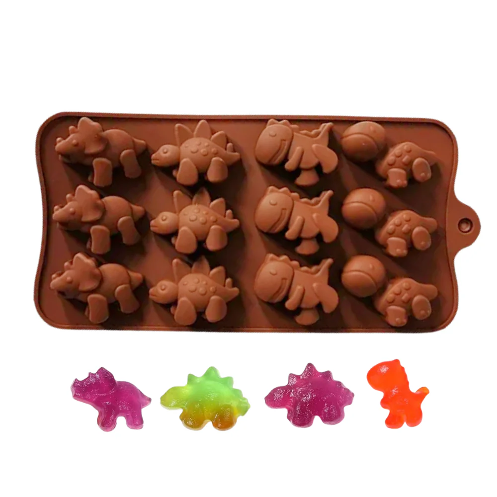 Que sus rugidos no te espanten. Hermoso molde de silicón de 12 tiernos y hermosos dinosaurios. Con 4 dinosaurios diferentes podrás brindar variedad a tus creaciones.