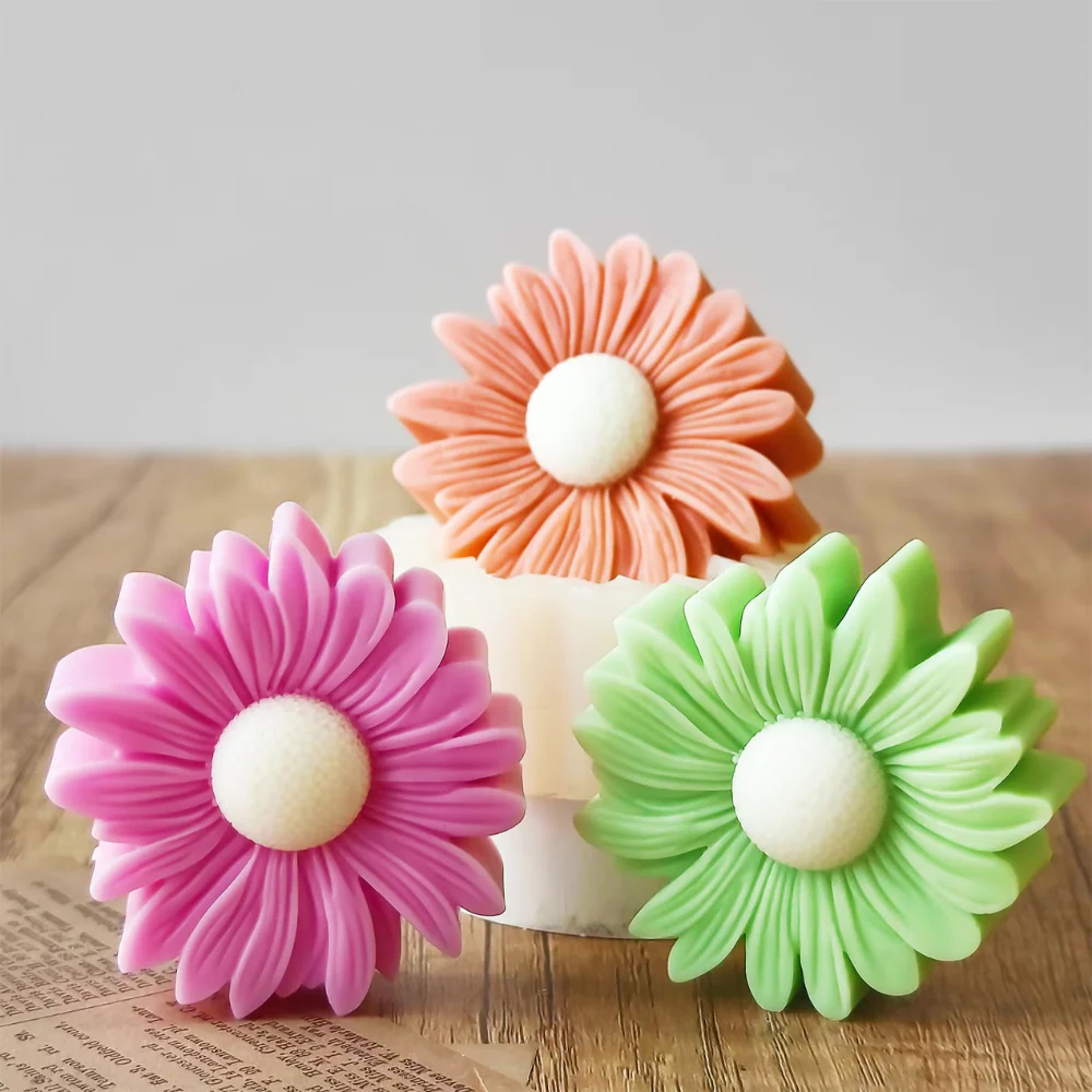 Molde de flor de margarita de 6 cm ideal para elaborar velas y jabones con detalles perfectos en sus pétalos.