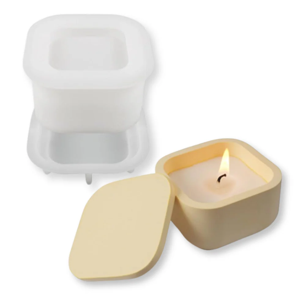 - Molde de silicona para frascos cuadrados lisos con tapa adecuado para soportes de velas.