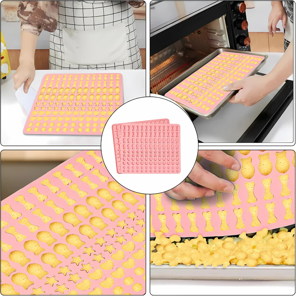 Molde de silicón con 130 cavidades para gomitas. Este molde cuenta con 5 diseños diferentes con 26 cavidades cada diseño.