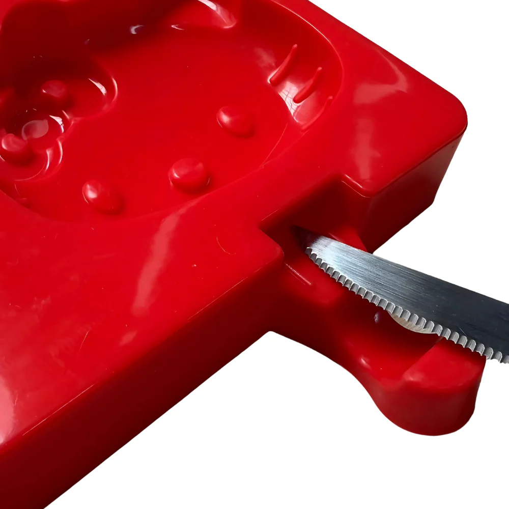 Este molde no cuenta con abertura para el abatelenguas, se recomienda realizarlo con un cuchillo de punta dentado, y posteriormente ingresar el abatelenguas o palito de paleta de tu preferencia. (Véase foto de referencia).