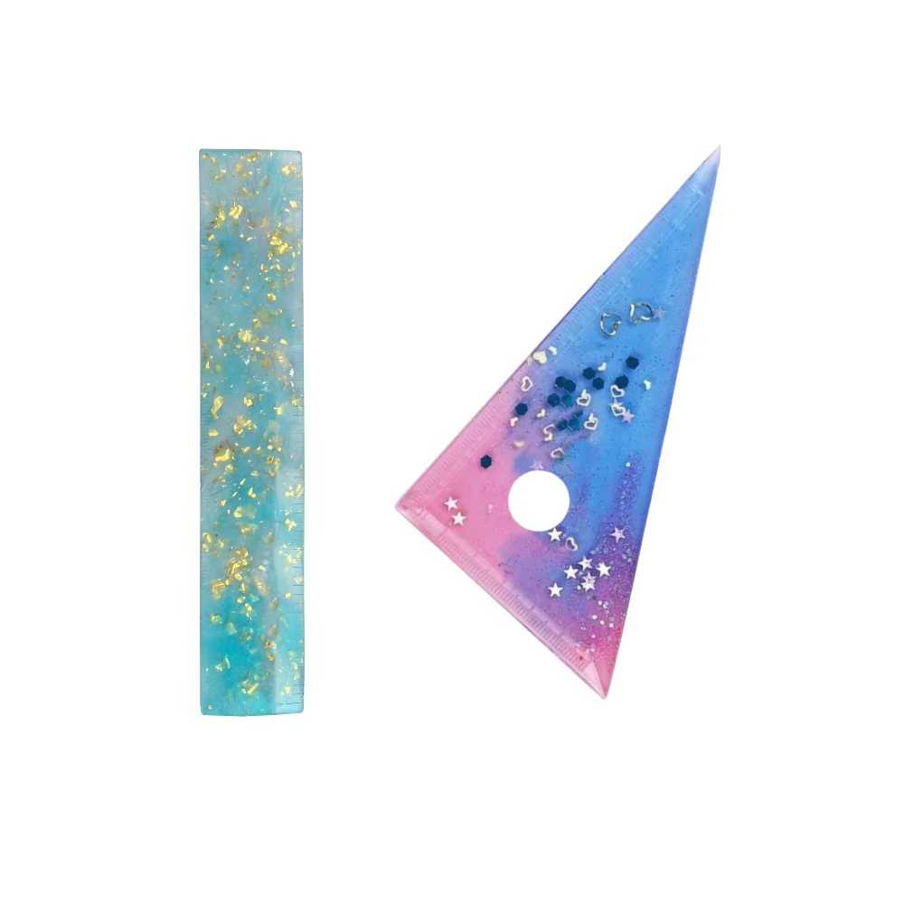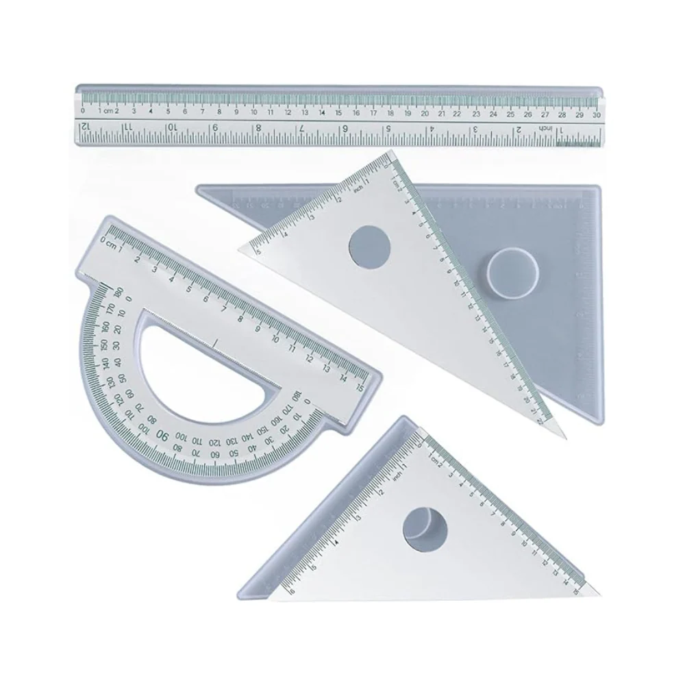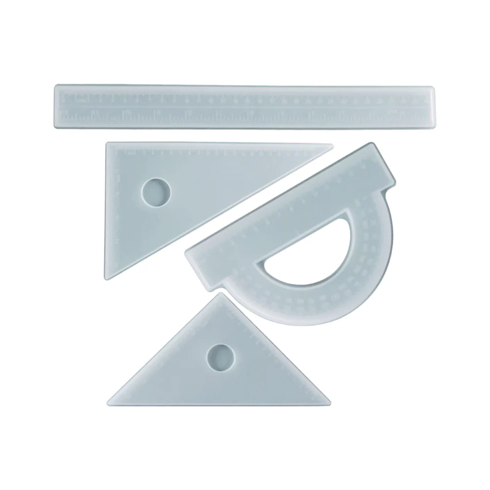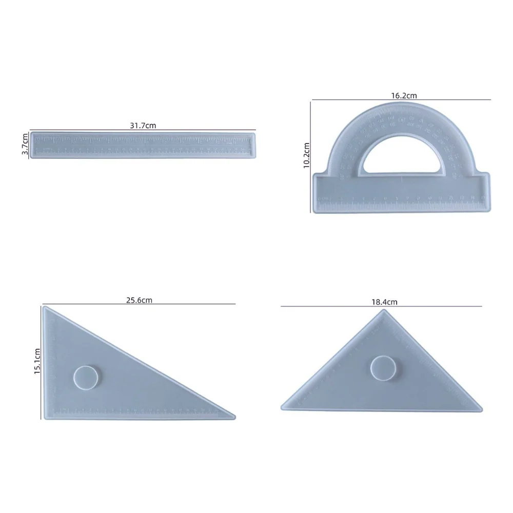 Moldes de regla con escala de 4 piezas: regla 30 cm, triángulo derecho, triángulo isósceles y trasportador. Haz creaciones divertidas y creativas para los más pequeños de la casa.