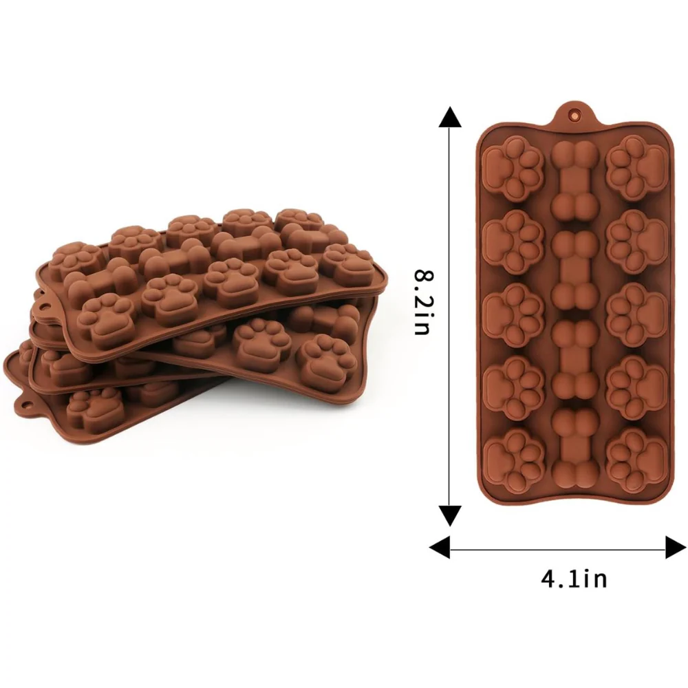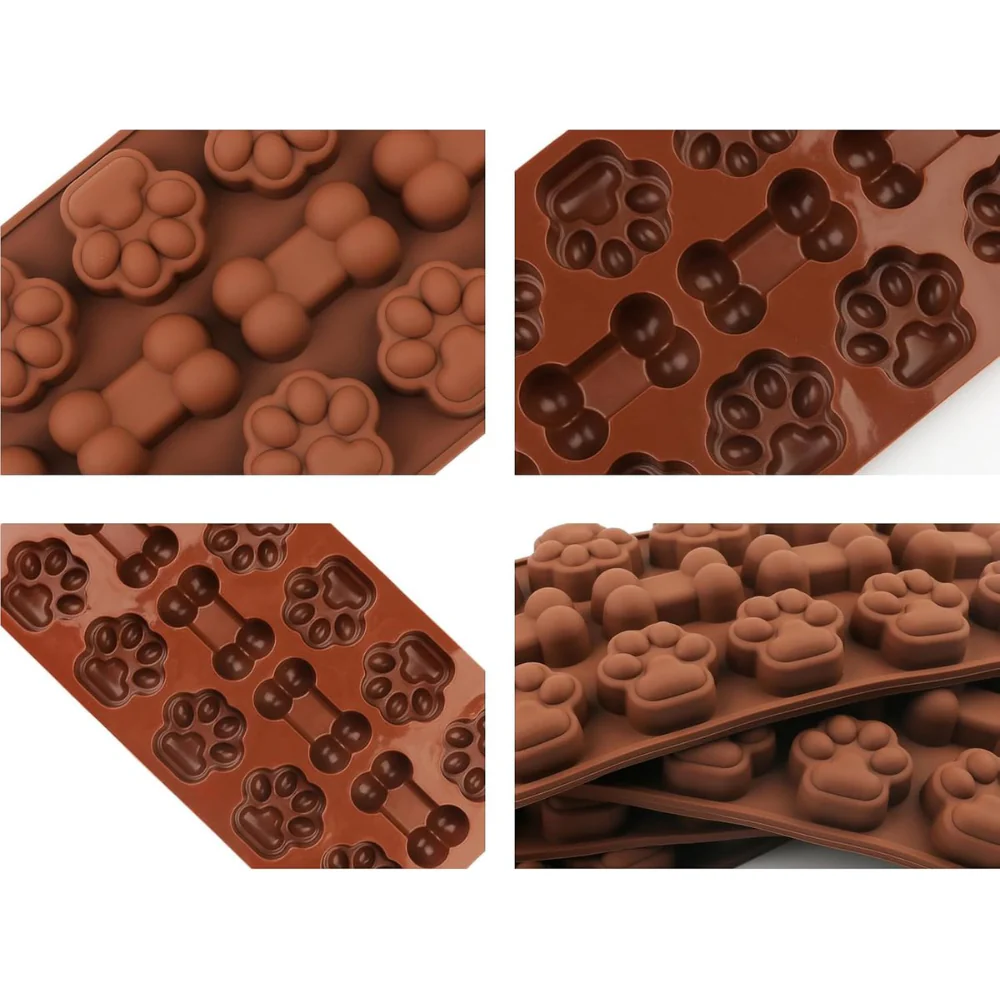 ¡Detalles Adorables! Crea golosinas y adornos temáticos para amantes de mascotas. Molde mascota con huellitas y huesitos, ideal para repostería, chocolate y decoración.