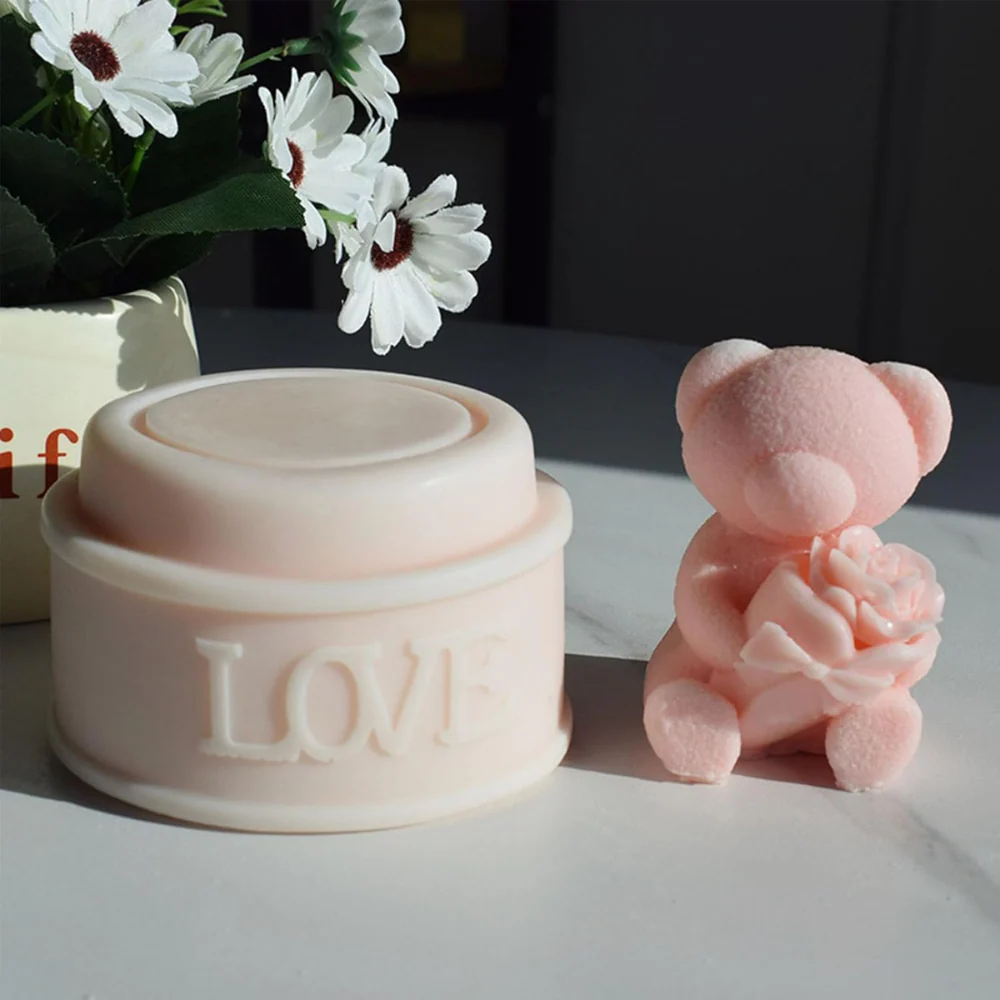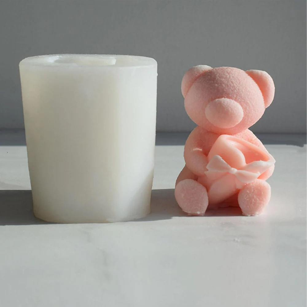 Molde de osito con arreglo floral en sus manos, pero sin flores.