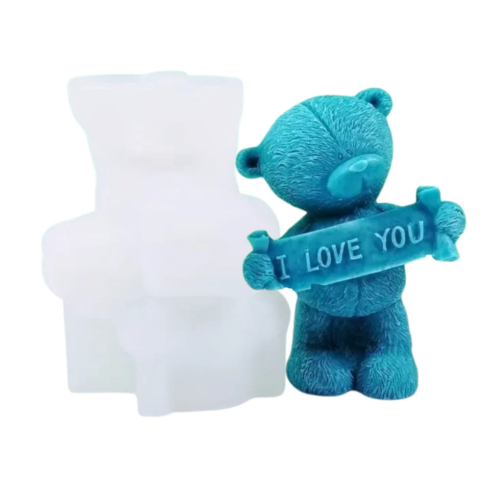 Molde de silicona de oso grande con frase I love you.