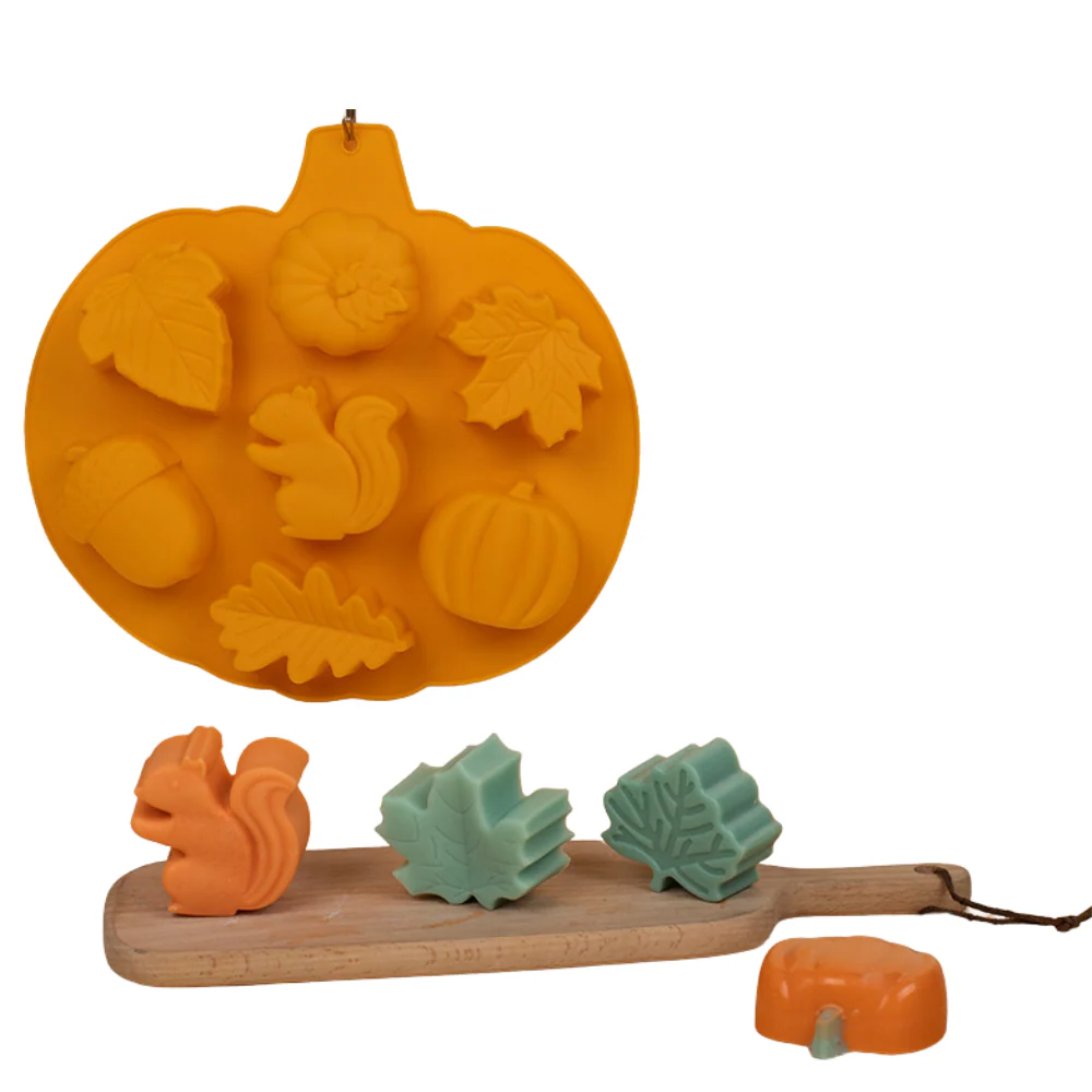 Molde Otoñal con diversas figuras de calabaza y ardilla, ¡muy de temporada!