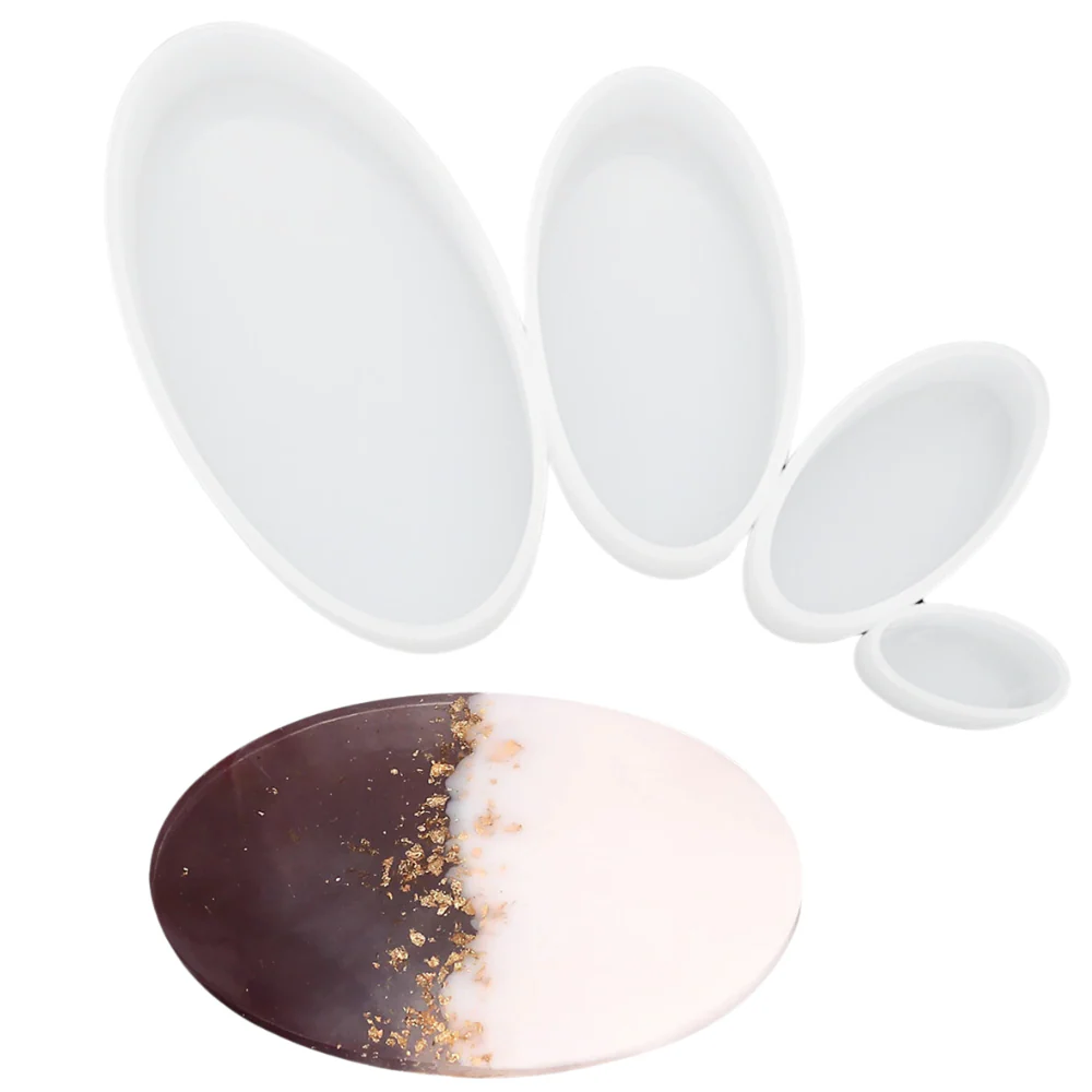 Molde Ovalado para Resina Epoxi – Molde de Silicón con 4 Óvalos para Manualidades Creativas