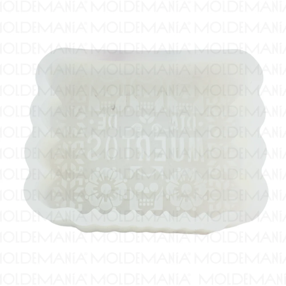 Molde en forma de nuestro papel picado con grabados definidos y la frase de Día de Muertos que cautivaran a todos.