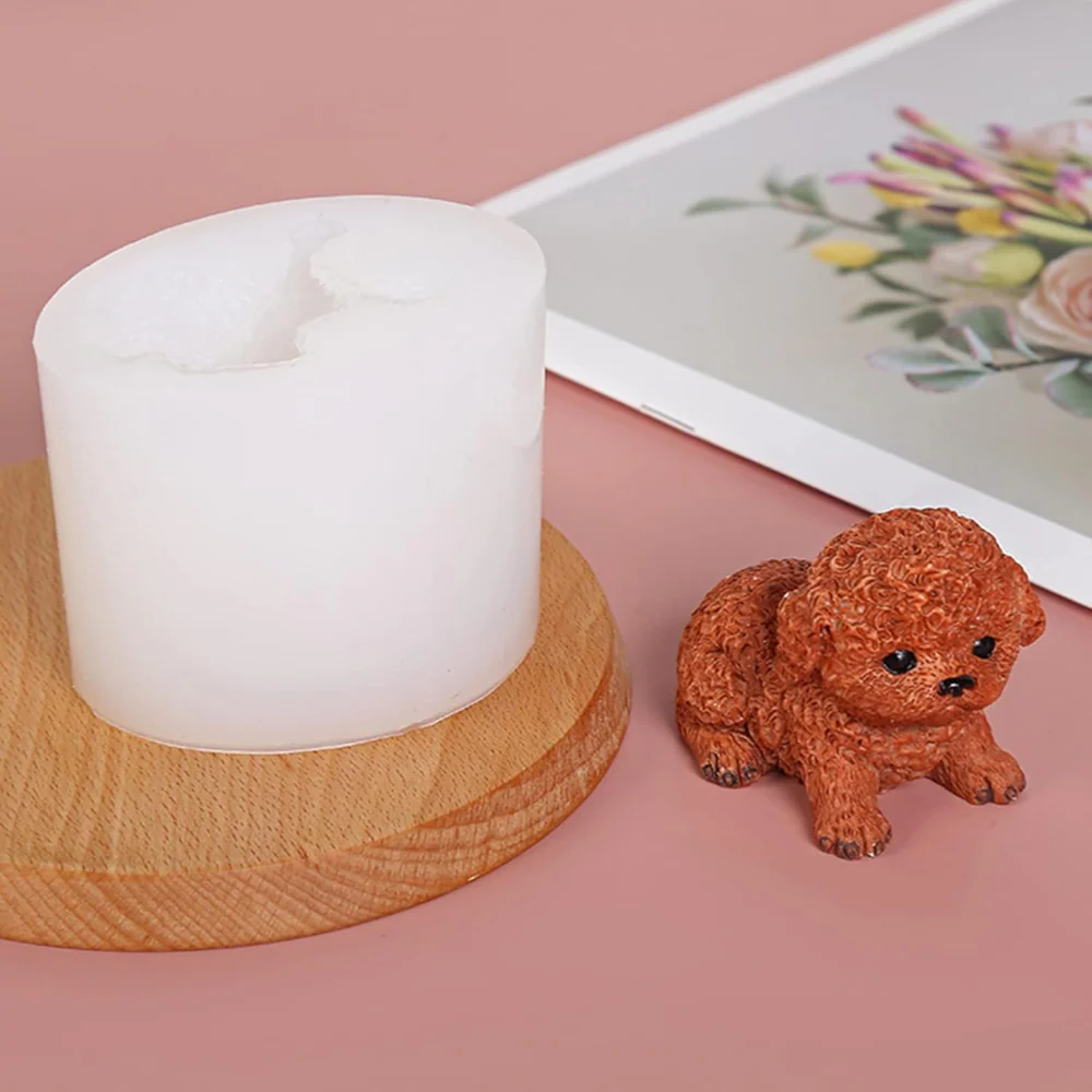 Molde de silicón para vela en forma de perrito sentado.