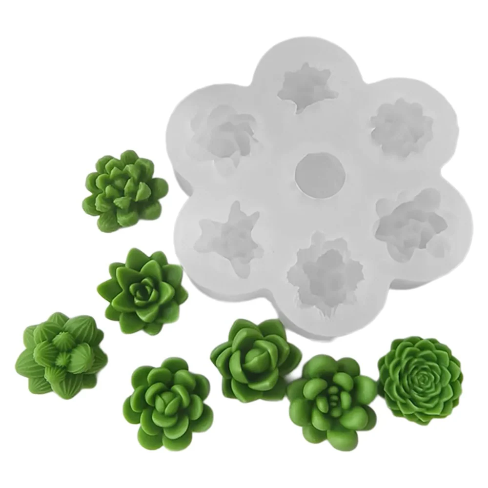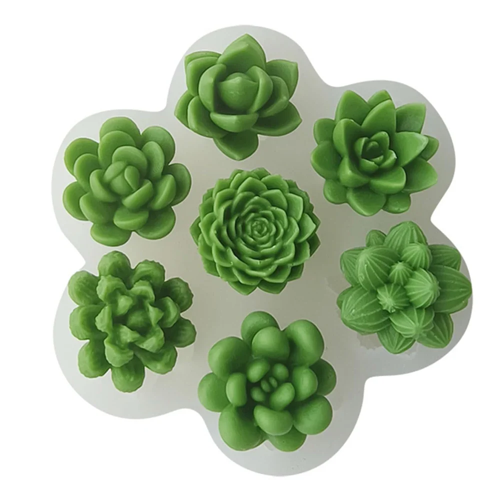 Molde de silicón con 7 suculentas 3D de diseño realista.