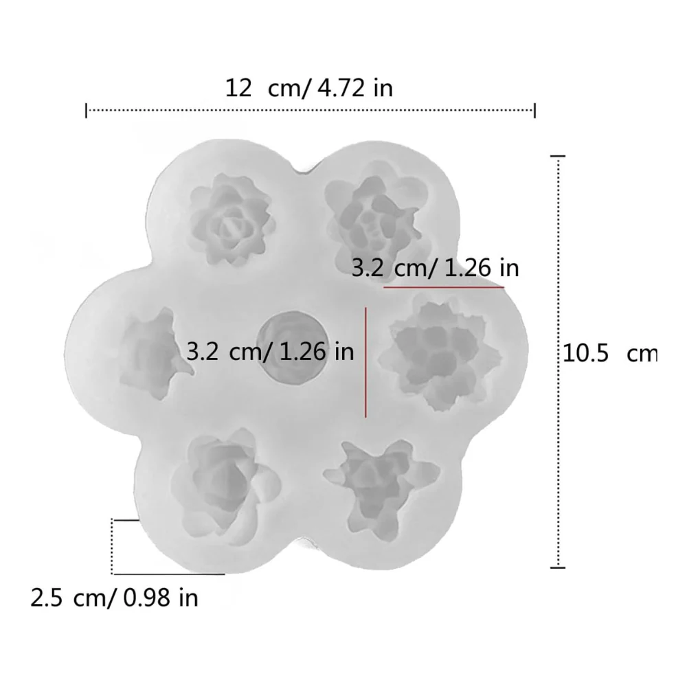 Este molde de silicón con un mix de suculentas en 3D es perfecto para crear decoraciones hermosas y realistas de suculentas para tus creaciones de repostería, velas y más. Con capacidad para moldear 7 suculentas detalladas, este molde ofrece una variedad de diseños, ideal para dar un toque único a tus pasteles, cupcakes, galletas, chocolates, y jabones.