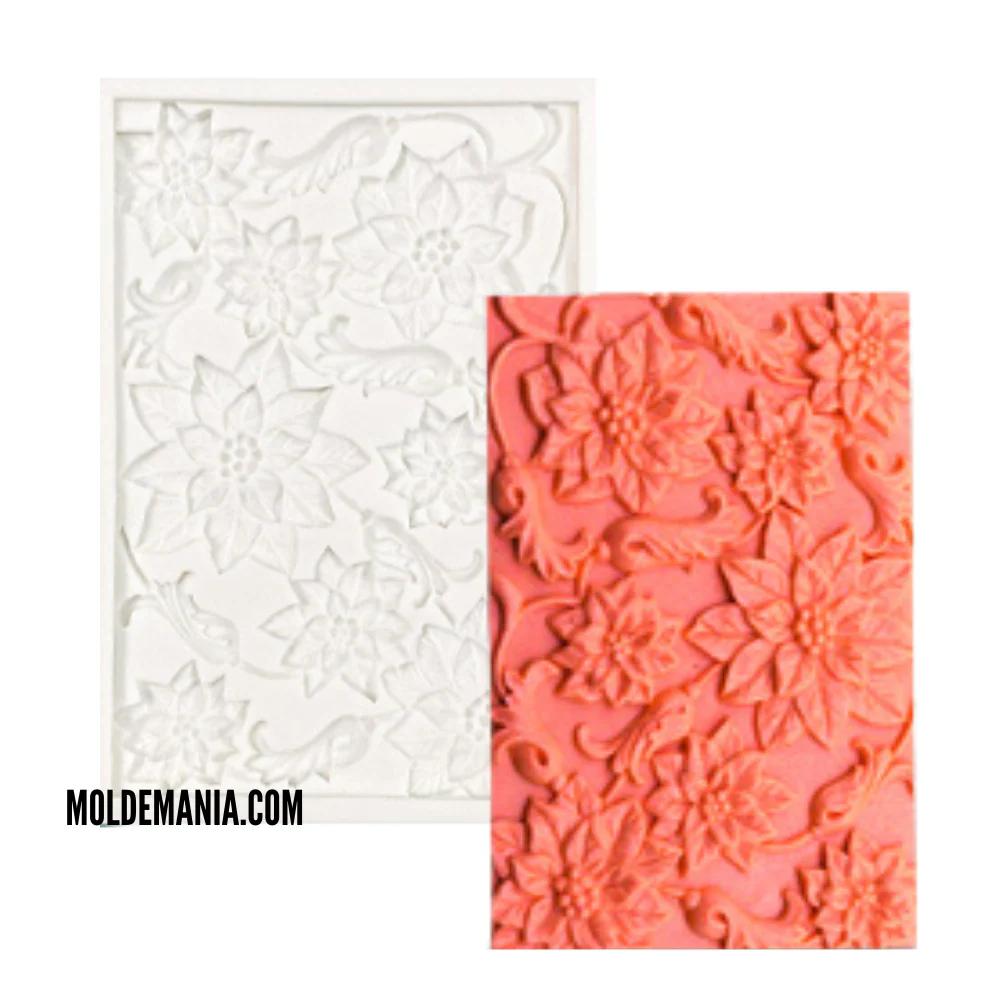 Molde de silicón para fondant con textura de flores.