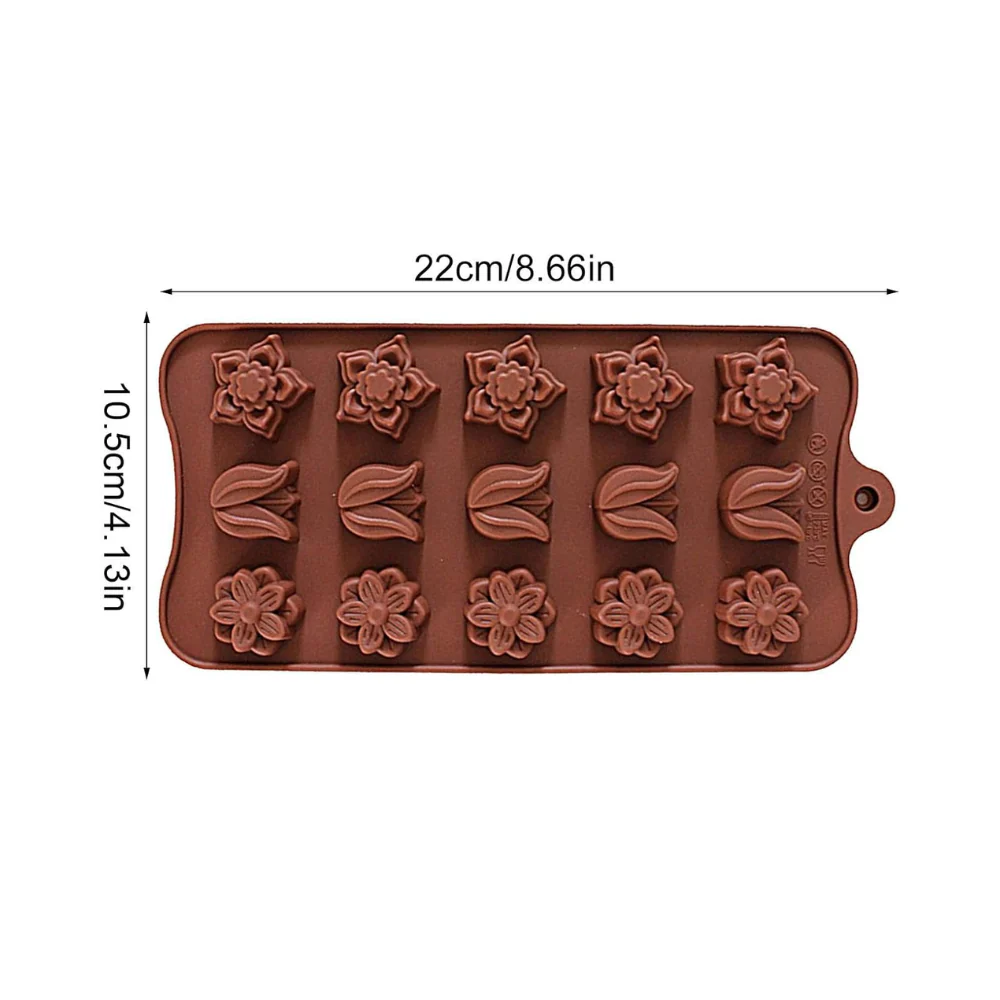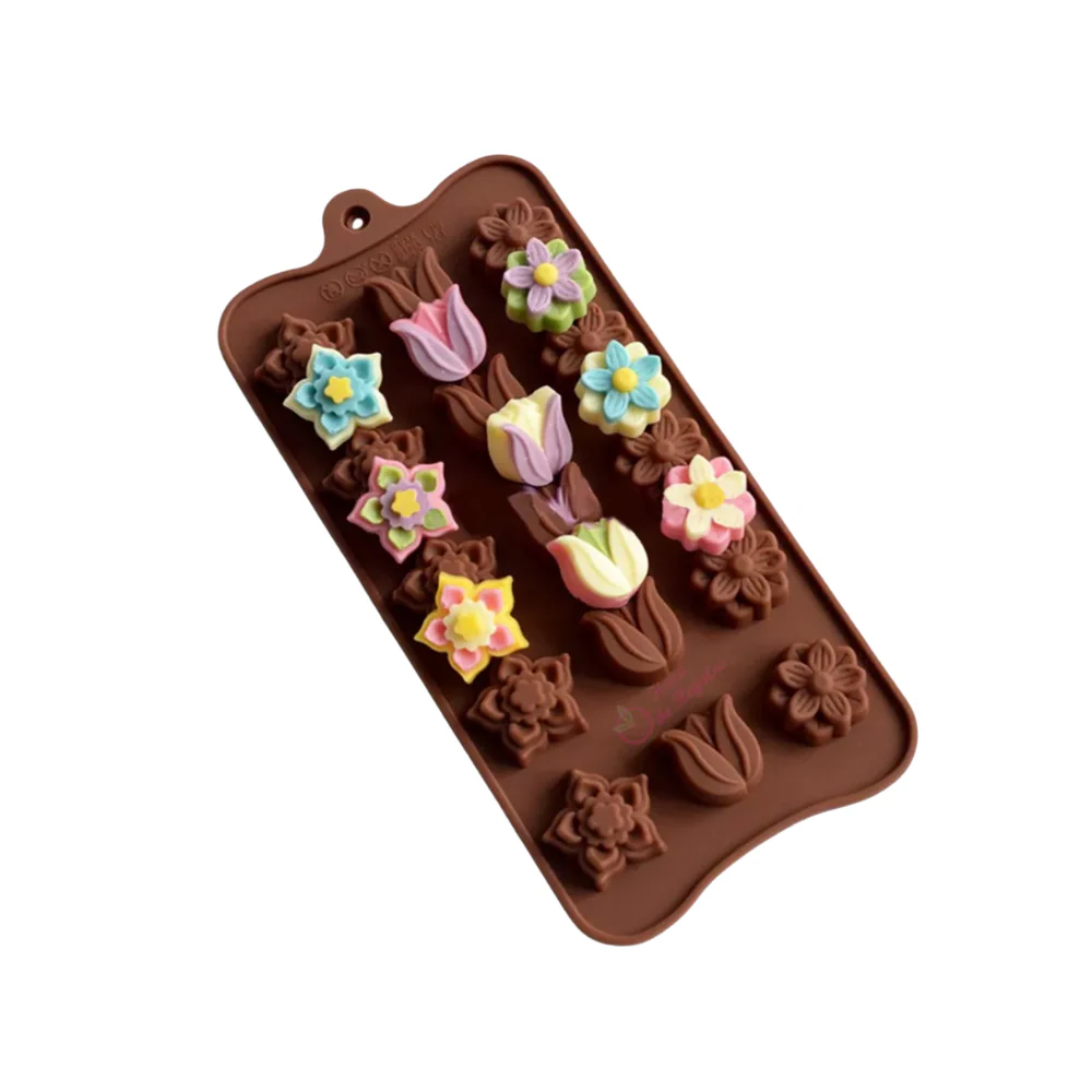 Molde de silicón para trufas en forma de tulipanes. Cuenta con 15 flores y 3 diferentes tulipanes.