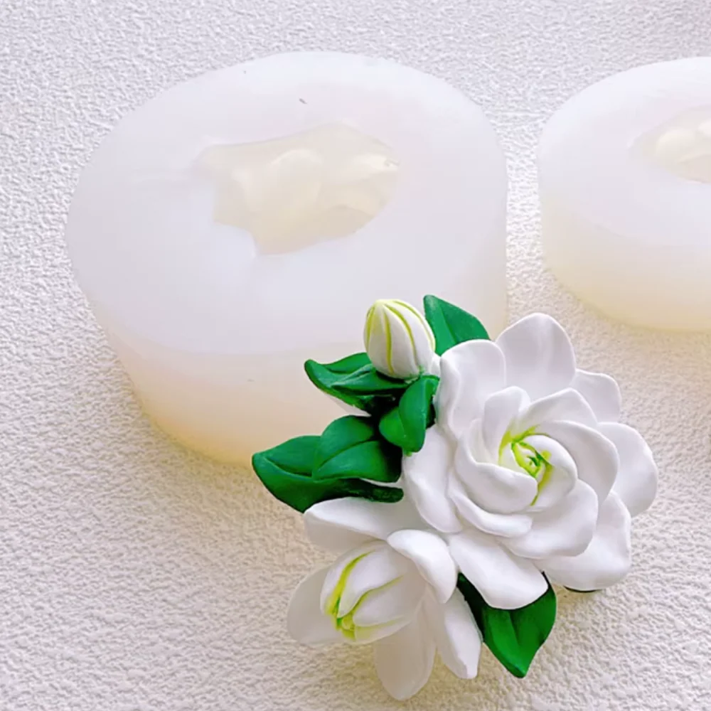 Molde de silicón de primera calidad que te permitirá recrear dos flores de gardenia con su botón y hojas.