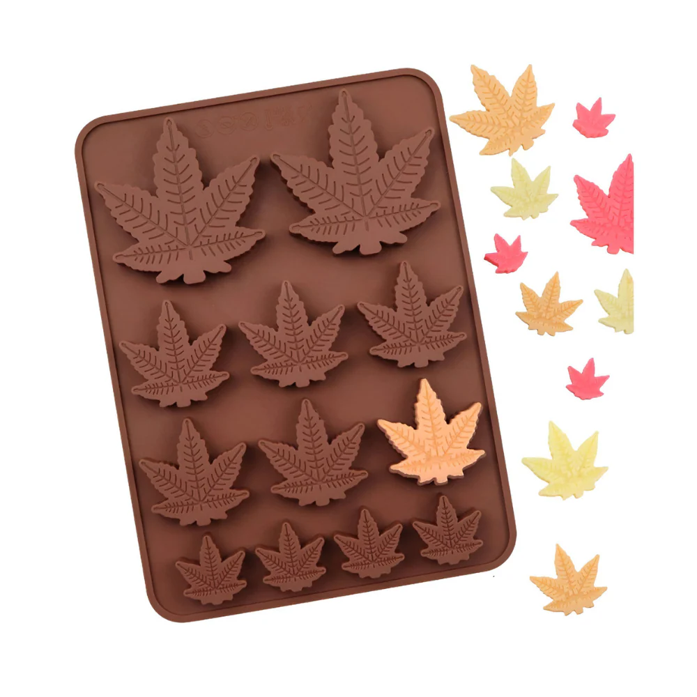 Molde de silicón flexible con 12 hojas de diversos tamaños.