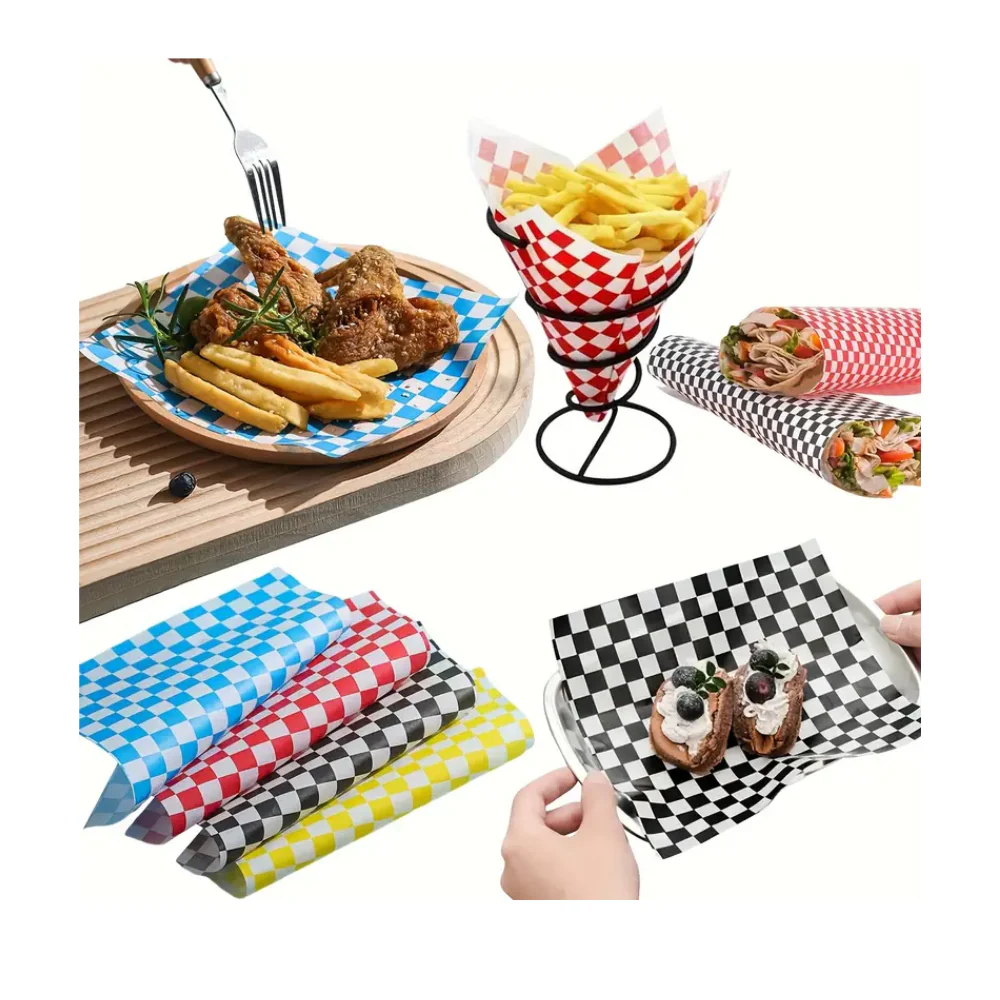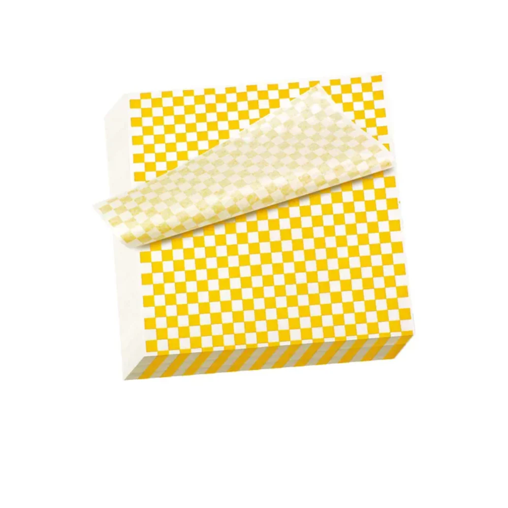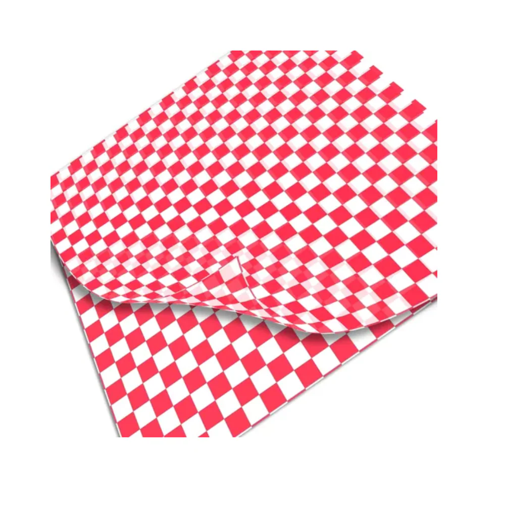 Papel de grado alimenticio de diseño clásico para envolver bocadillos, tortas, hamburguesas, cuernitos, baguete, wraps.