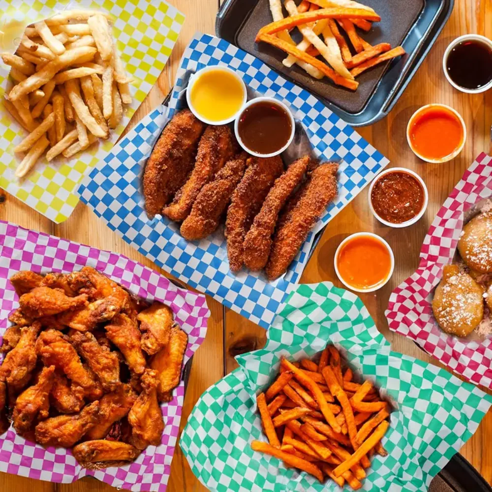Con el cual también podrás cubrir charolas de alimentos como dedos de queso, papas fritas, alitas, nachos, costillas, boneless y mucho más.
