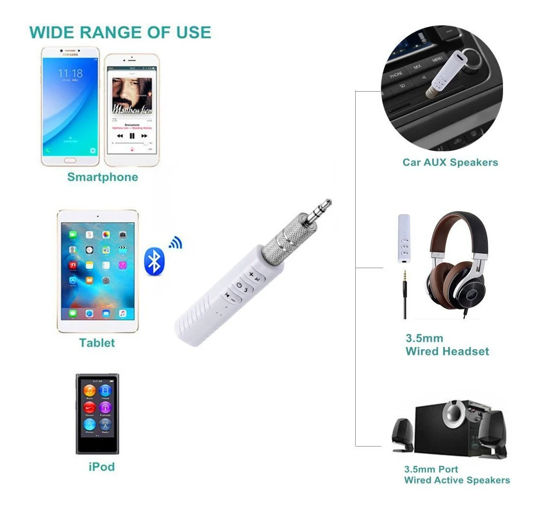 Receptor de audio Adaptador inalámbrico de auriculares de 3,5 mm con llamadas manos libres y puerto AUX para auriculares Altavoces estéreo para el automóvil en el hogar