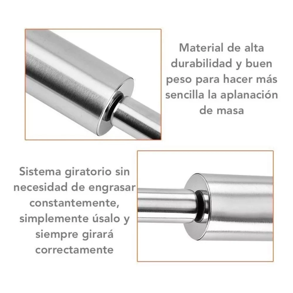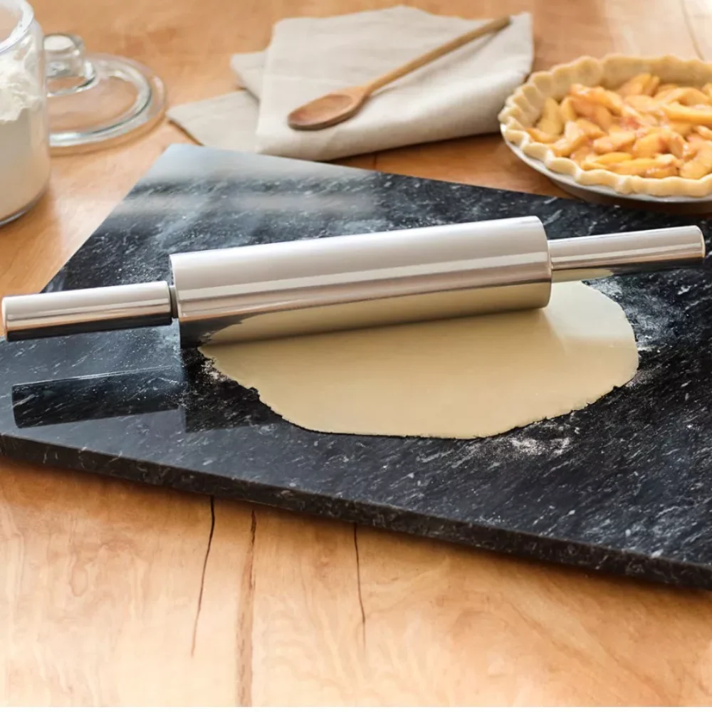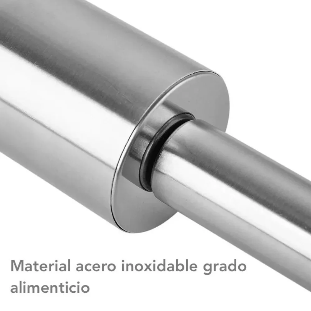 Rodillo de amasar de calidad profesional hecho de acero inoxidable hermoso y de alta funcionalidad.