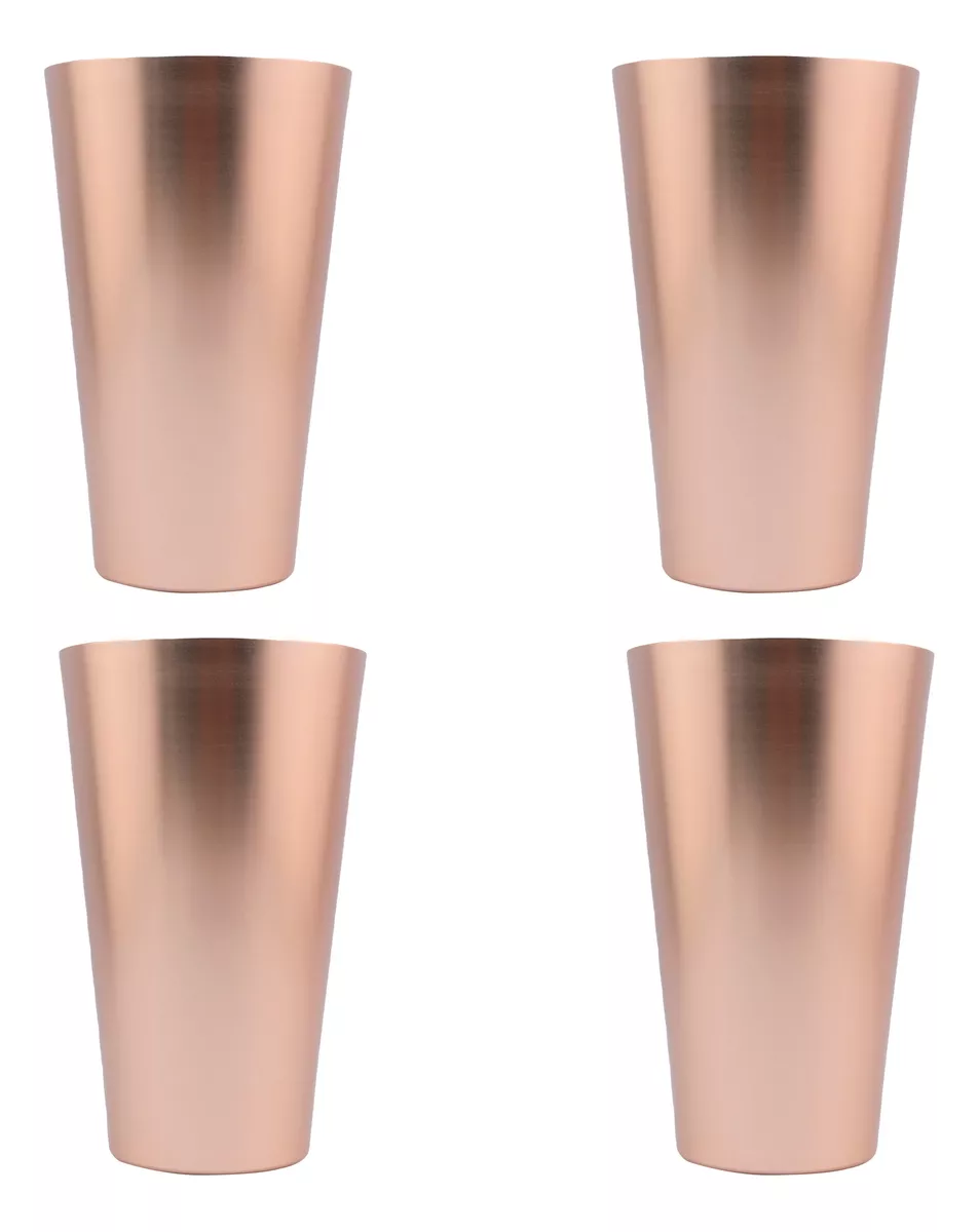 Añade un toque de elegancia y estilo a tus bebidas con este set de 4 vasos de aluminio. Disponibles en colores sofisticados como cobre, dorado y negro, estos vasos son ideales para coctelería, bebidas frías, jugos, gaseosas y más. Elige el color que mejor se adapte a tu estilo o la decoración de tu mesa y disfruta de la combinación perfecta de funcionalidad y diseño.