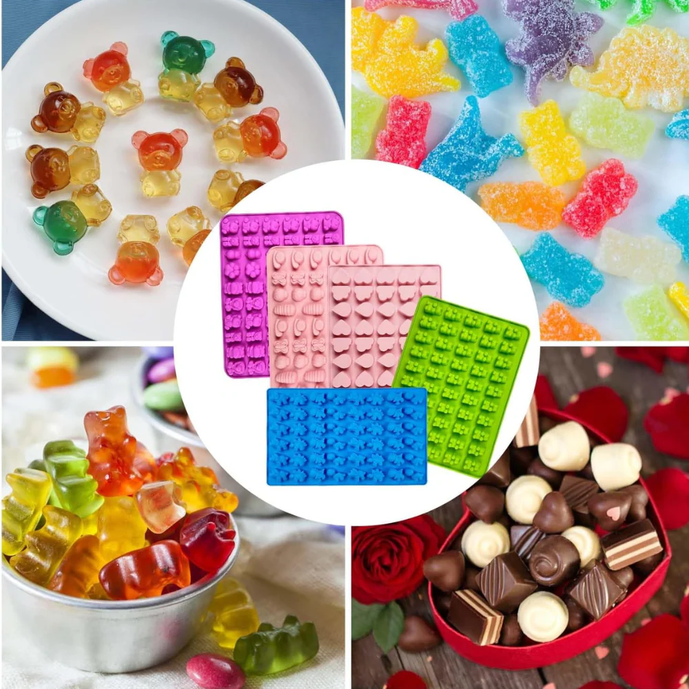 Cada molde cuenta con diseños diferentes para brindarte variedad al momento de elegir qué gomita deseas preparar. Podrás realizar las clásicas gomitas en forma de oso, o bien podrás hacer gomitas novedosas de dinosaurio, corazones, insectos o animales de zoológico.