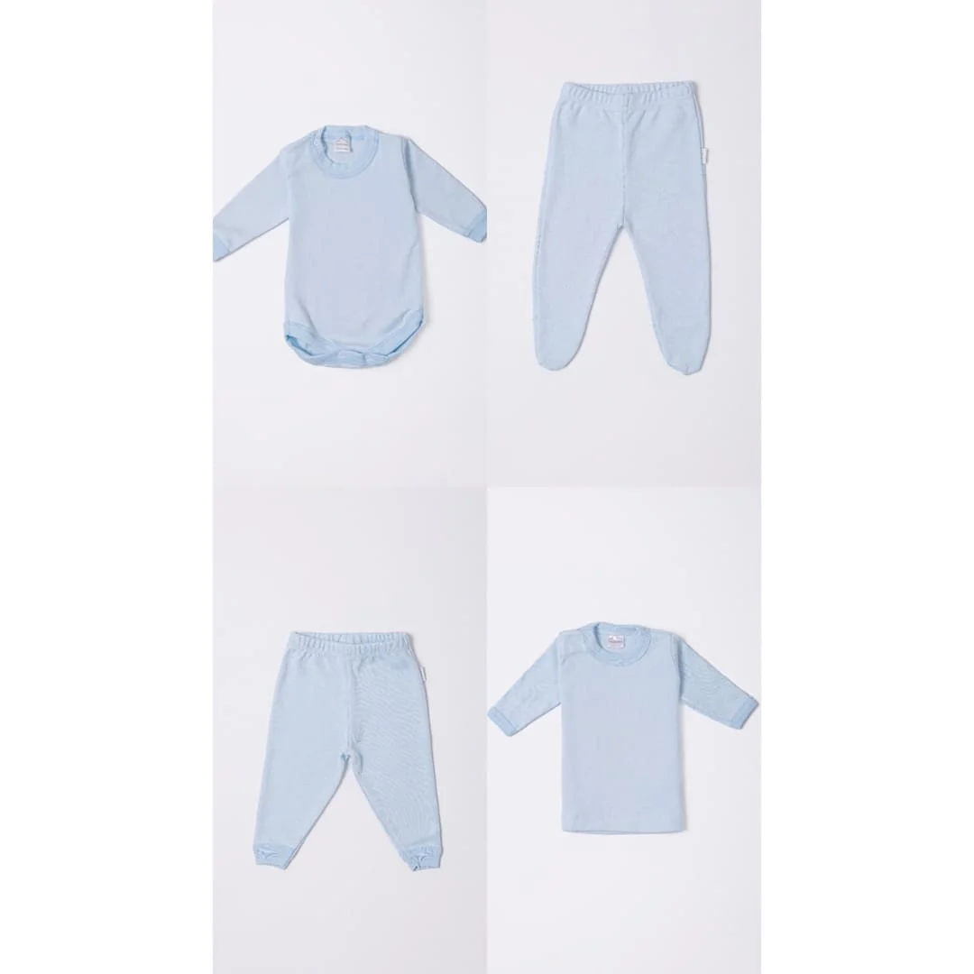 Incluye 4 prendas: body francés, remera manga larga, medio osito y pantalón. Color y talle a elección.