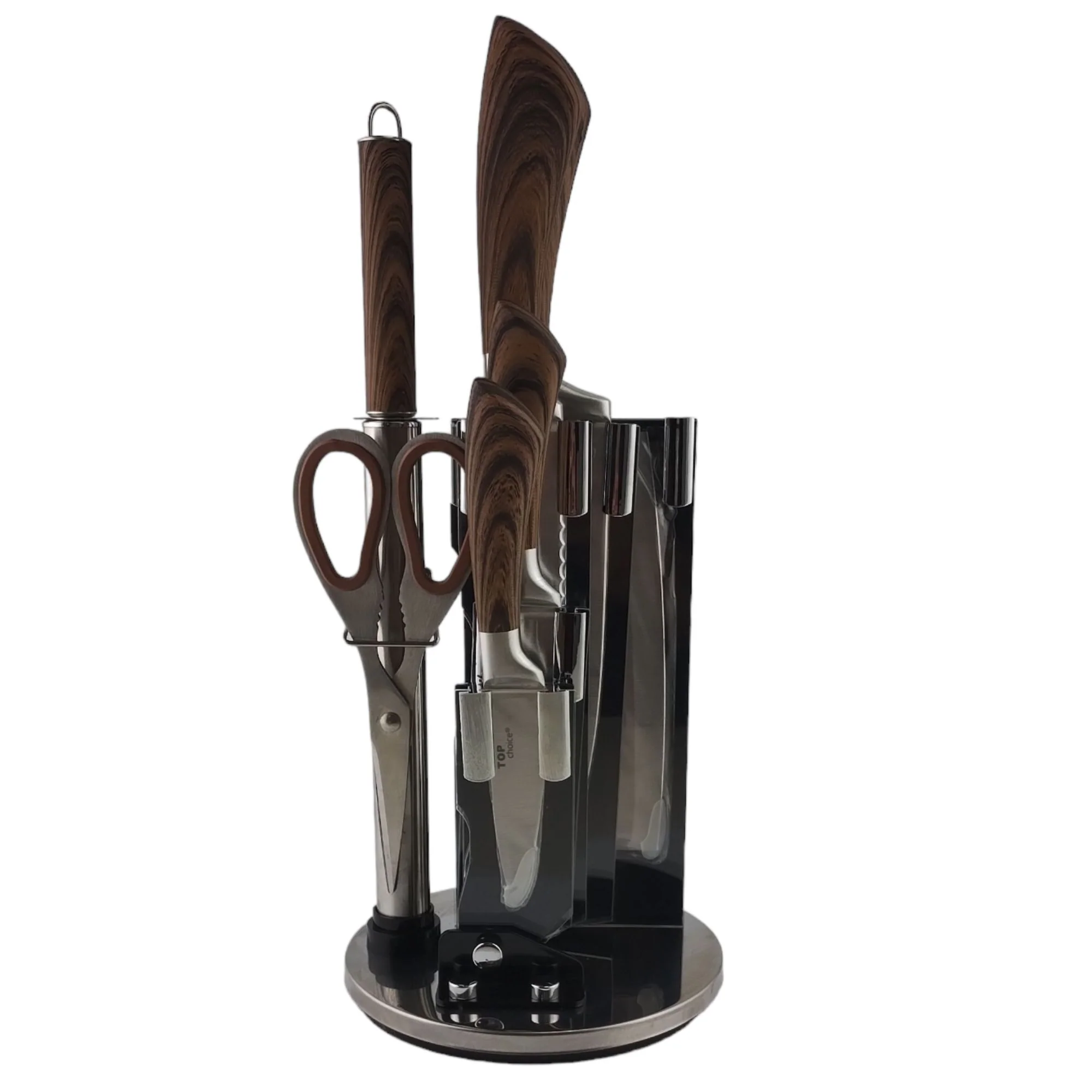 Base Giratoria: La base giratoria de 16 cm de diámetro es práctica y elegante, lo que facilita el acceso a cada cuchillo mientras cocinas. Además, agrega un toque de estilo a tu cocina.