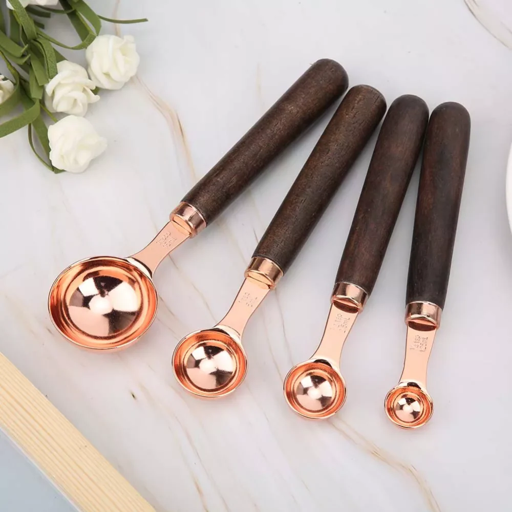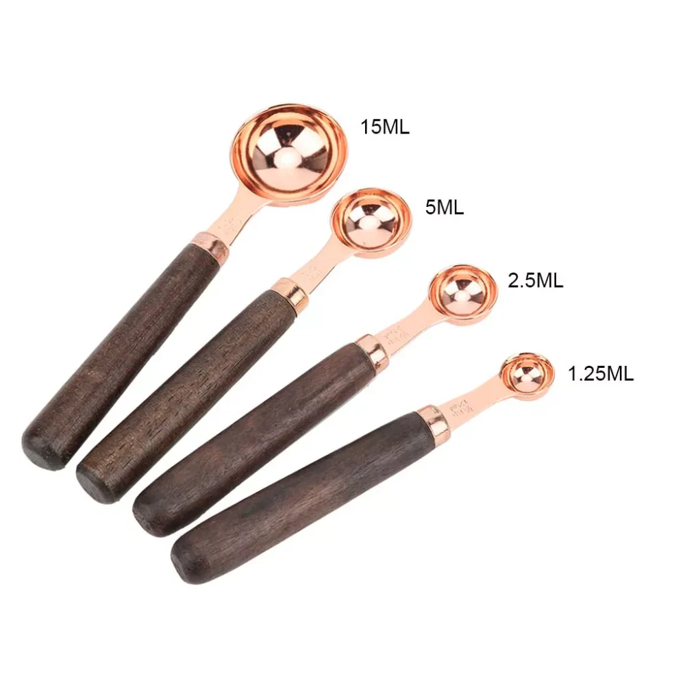 4 cucharas medidoras de acero inoxidable chapadas en cobre.