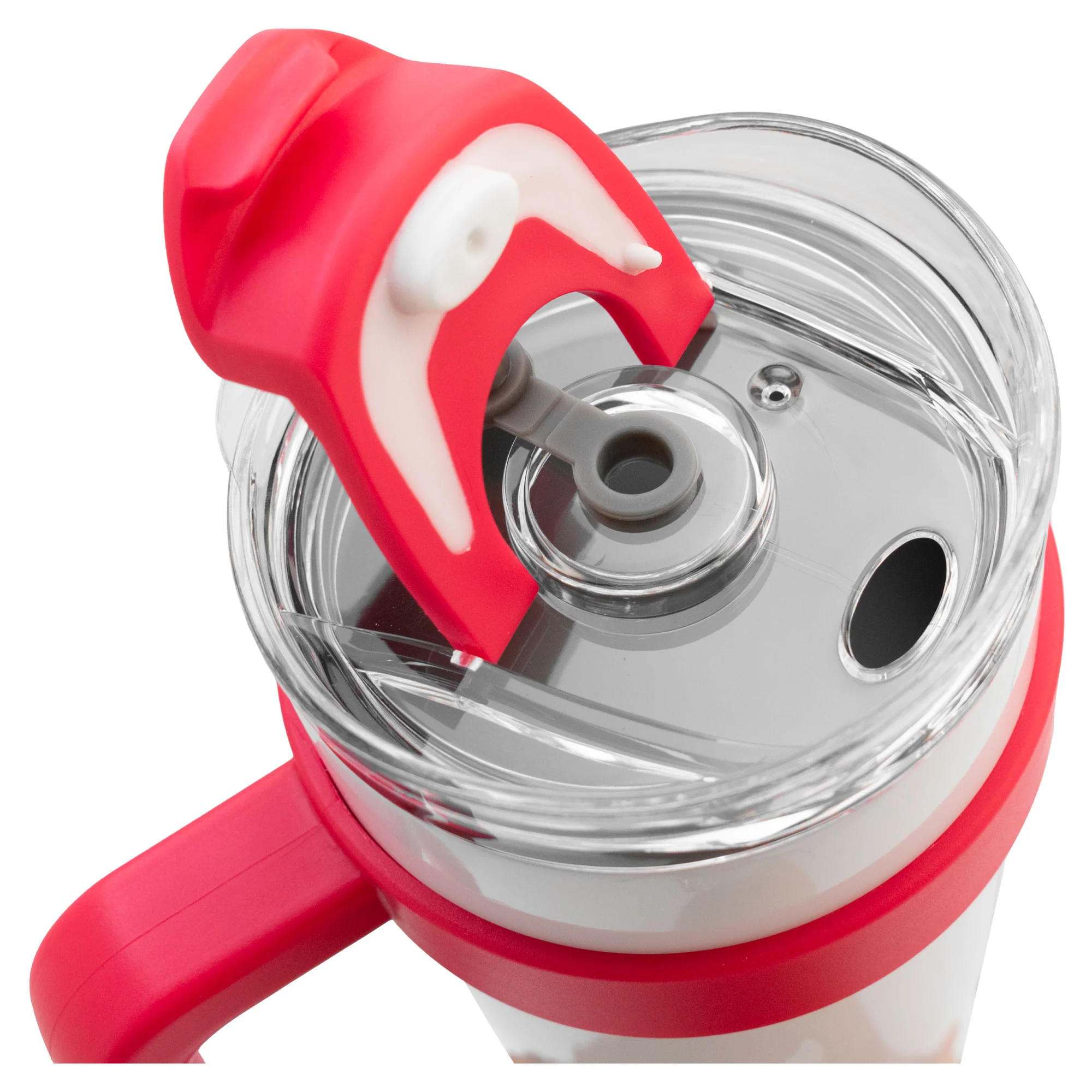 • Tapa Hermética: La tapa cuenta con una boquilla con tapa para asegurar un cierre seguro, previniendo derrames. Además, el orificio del popote está sellado con un tapón de silicona, mejorando la hermeticidad.