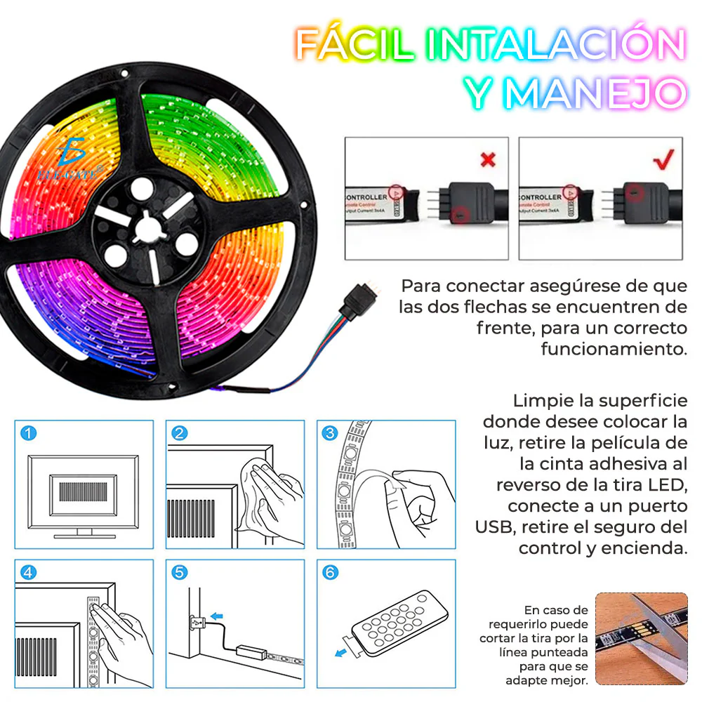 Flexible de instalar – se puede instalar fácilmente para un transporte conveniente. Adhesivo más fuerte que otras marcas de tiras de LED. Es súper pegajoso.