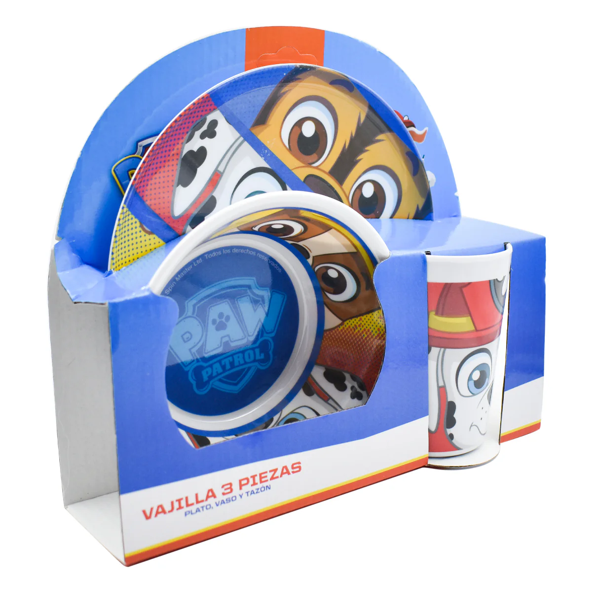Con un increíble y colorido diseño de Paw Patrol, esta vajilla es perfecta para el uso diario. ¡Tus hijos querrán comer todas sus comidas en ella!