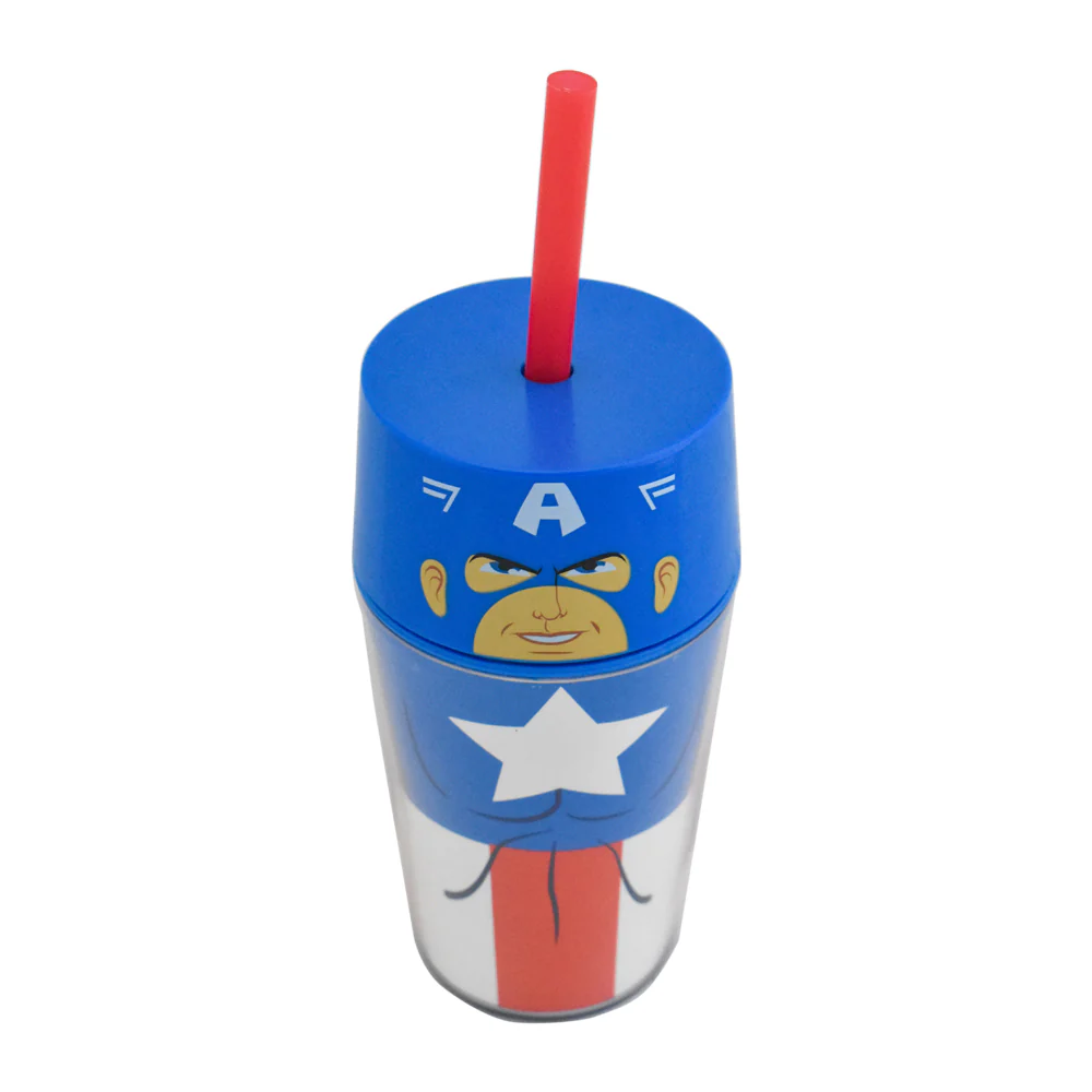 El Vaso Doble Pared con Tapa y Popote Zak! Disney Marvel Avengers es un producto emocionante que ofrece tanto funcionalidad como estilo, y está disponible en tres opciones de diseño basadas en los personajes de Marvel: Spider-Man, Capitán América e Iron Man. Aquí te proporcionaré una descripción más detallada, incluyendo las medidas, ideal para venta en línea: