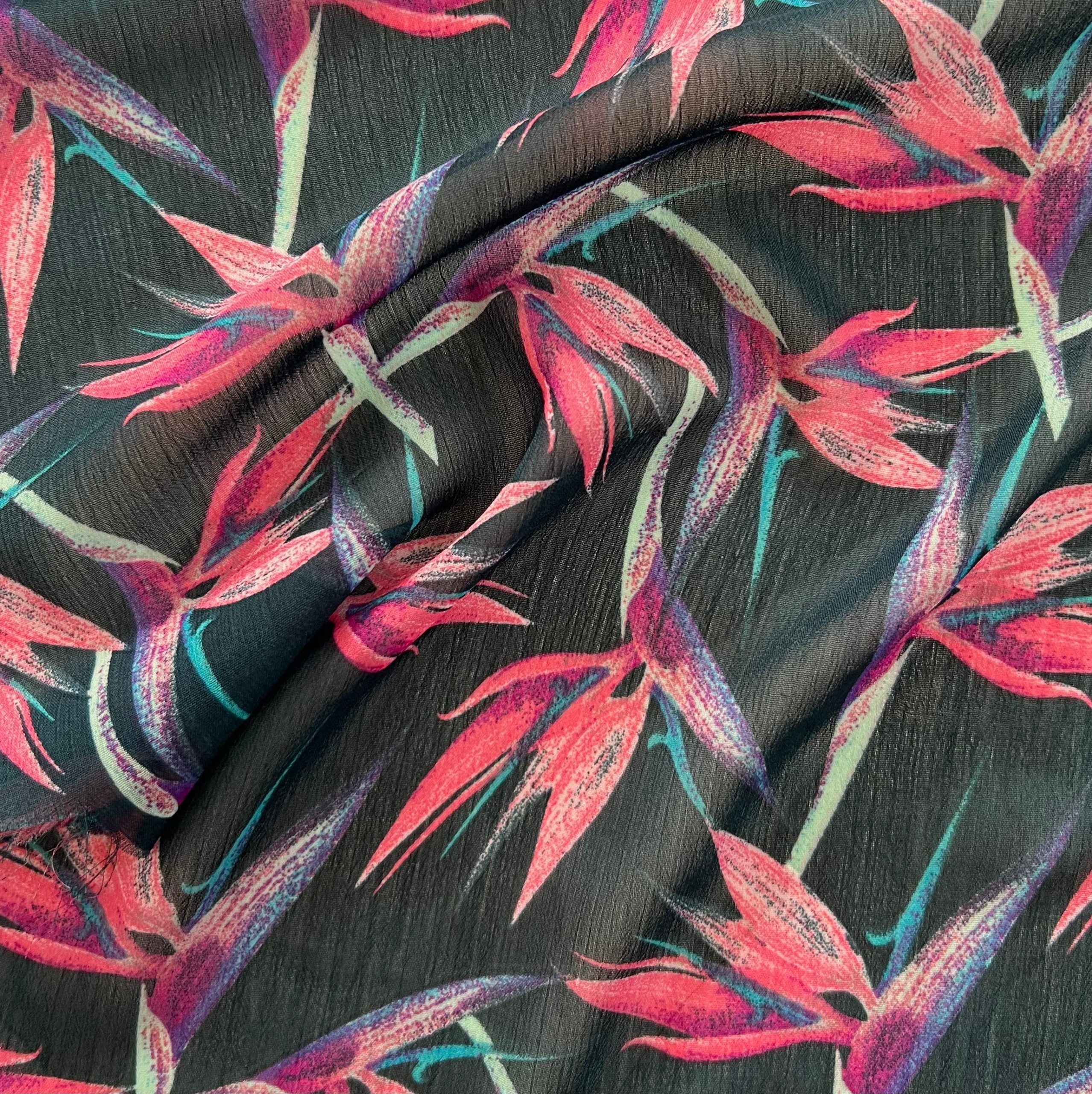 Yoryu estampado. 100% poliéster. Ancho de 1,45 mts.