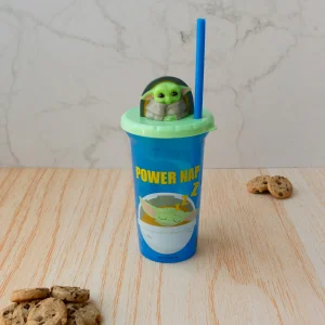Vaso de Plástico Infantil Con Tapa 3d Y Popote Baby Yoda Mandalorian 443ml