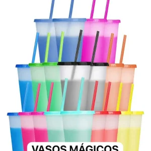 Vaso de Plástico con Tapa y Popote Personajes Animados 750ml