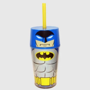 Vaso Doble Pared con Tapa y Popote Zak! DC Comics Batman, Superman Plastico 385ml